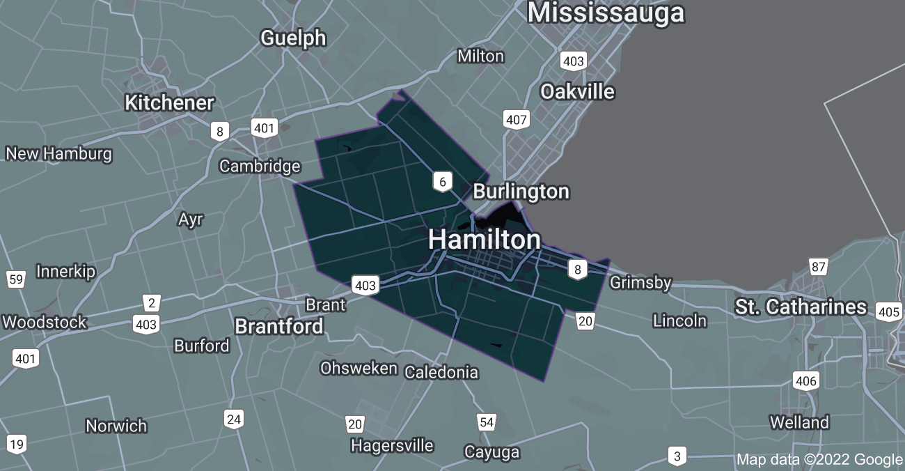 If you live within the Hamilton area, the price of the catio includes the installation fee (up to 10ft high). See the adjacent map. For travel outside this zone, and/ or installations higher than 10 ft, additional fees apply. Please contact us for more info.